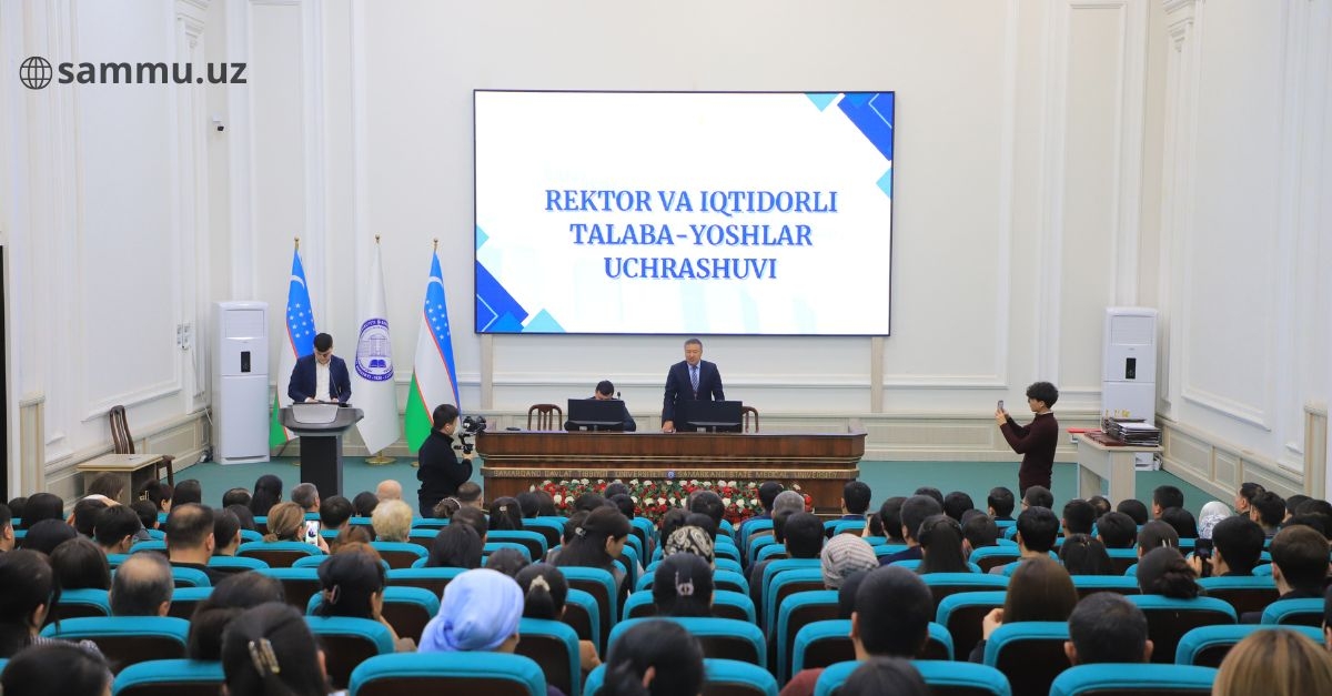 Uchrashuv davomida universitet rektori, professor Jasur Rizayev talabalar bilan samimiy suhbatlashib, ularning ilmiy va kelgusidagi kasbiy faoliyatlariga omad tiladi.