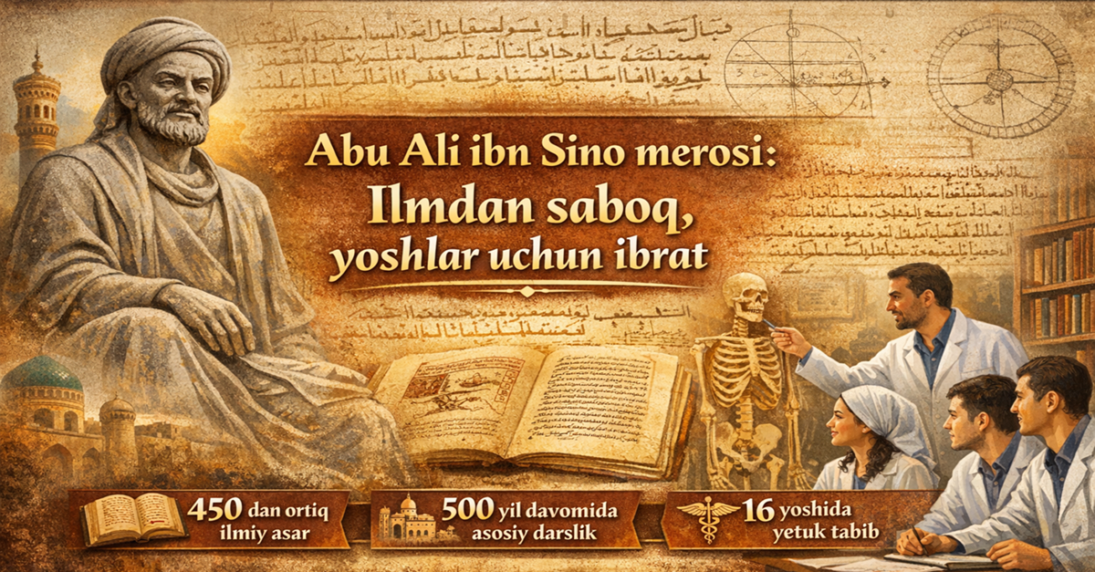 Bugungi kunda oliy ta’lim muassasalarida, xususan tibbiyot yo‘nalishida tahsil olayotgan yoshlar uchun Ibn Sino hayoti va faoliyati nafaqat tarixiy meros, balki ilmiy va ma’naviy kamolot sari yetaklovchi ibrat maktabidir. Uning ilmga chanqoqligi, izlanishdagi qat’iyati va inson salomatligini oliy qadriyat sifatida ulug‘lagani har bir talaba uchun yuksak mas’uliyat hissini uyg‘otadi.